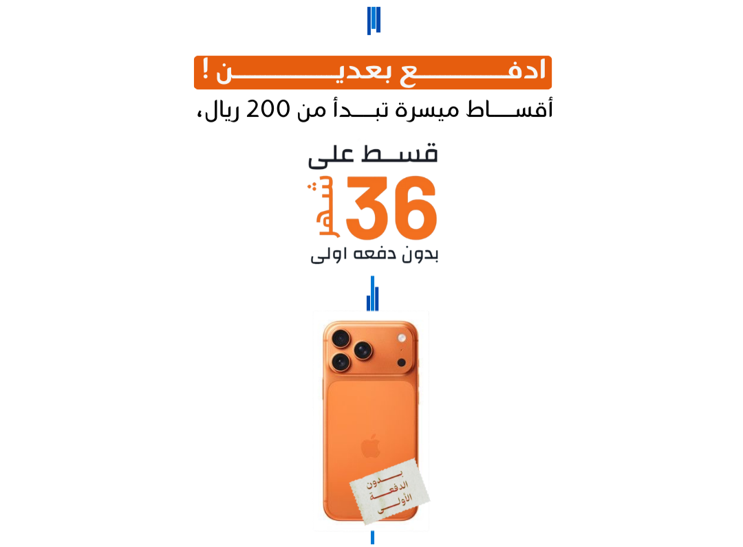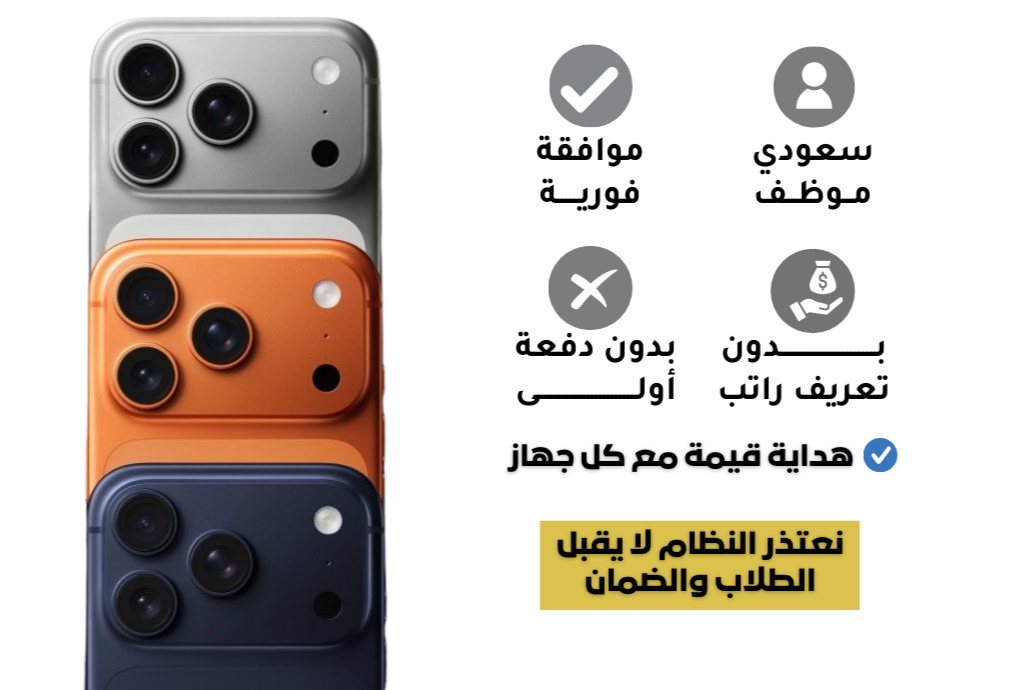 آيفون 17 برو – تقسيط حتى 36 شهر – بدون دفعة أولى. استلام فوري – ابتداء من 200 ريال